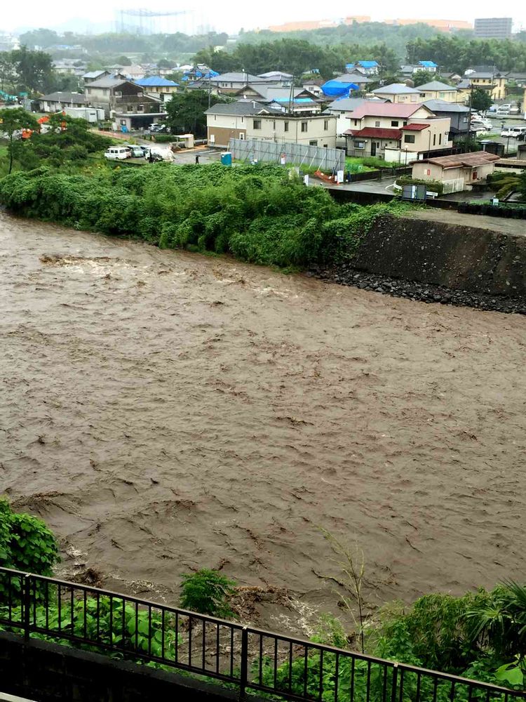 朝から大雨警報…家の裏の川が凄い勢いです。