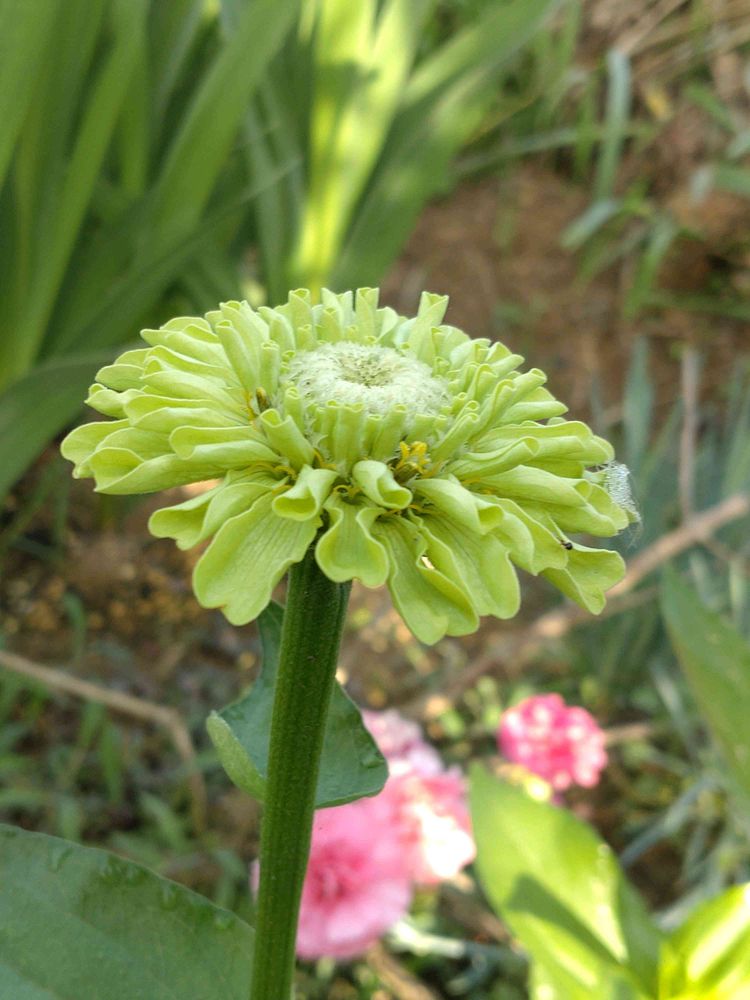 ピンクのジニア薄緑のジニアどちらも綺麗ですね😍