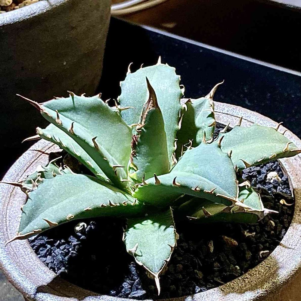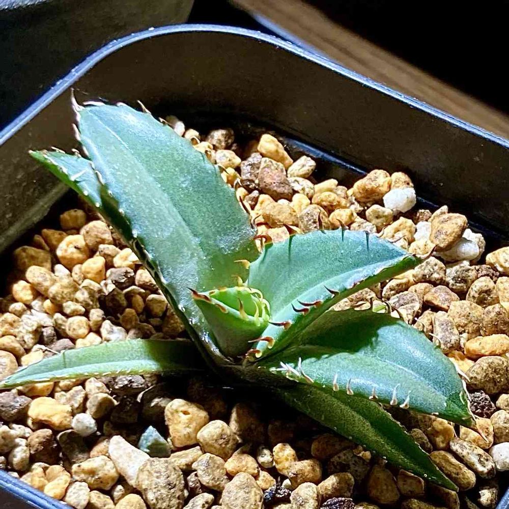 アガベNO.1コンパクタの子株、3ヶ月で、だんだん肉厚になってきました。😊