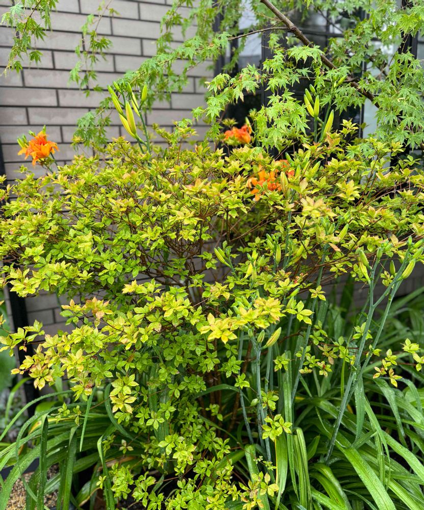 ドウダンツツジの木の下に