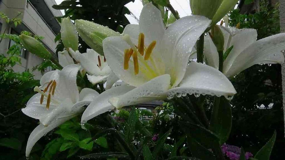 小さな庭の紫陽花とカサブランカ、健気に咲いています。