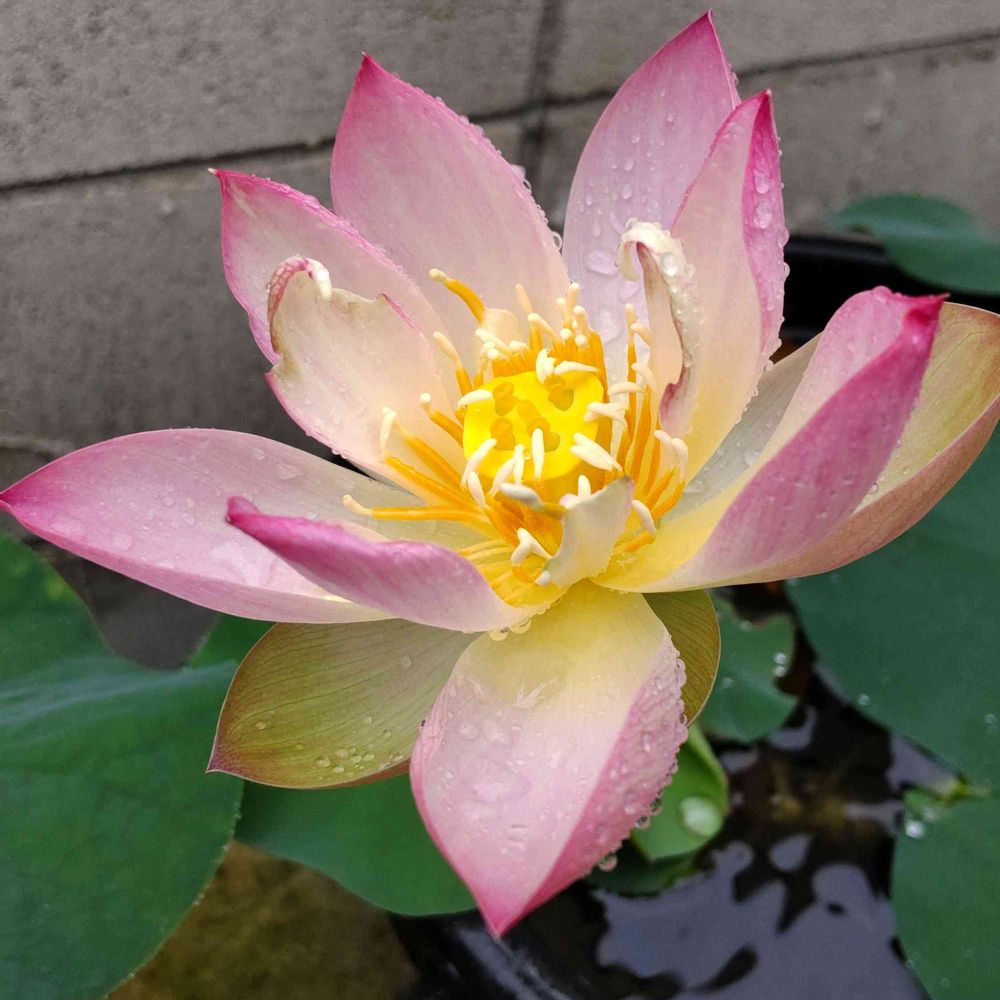 これは株分けした小さいレンコンで立ち葉もほぼ出ていないのですが、親株より早く開花。
