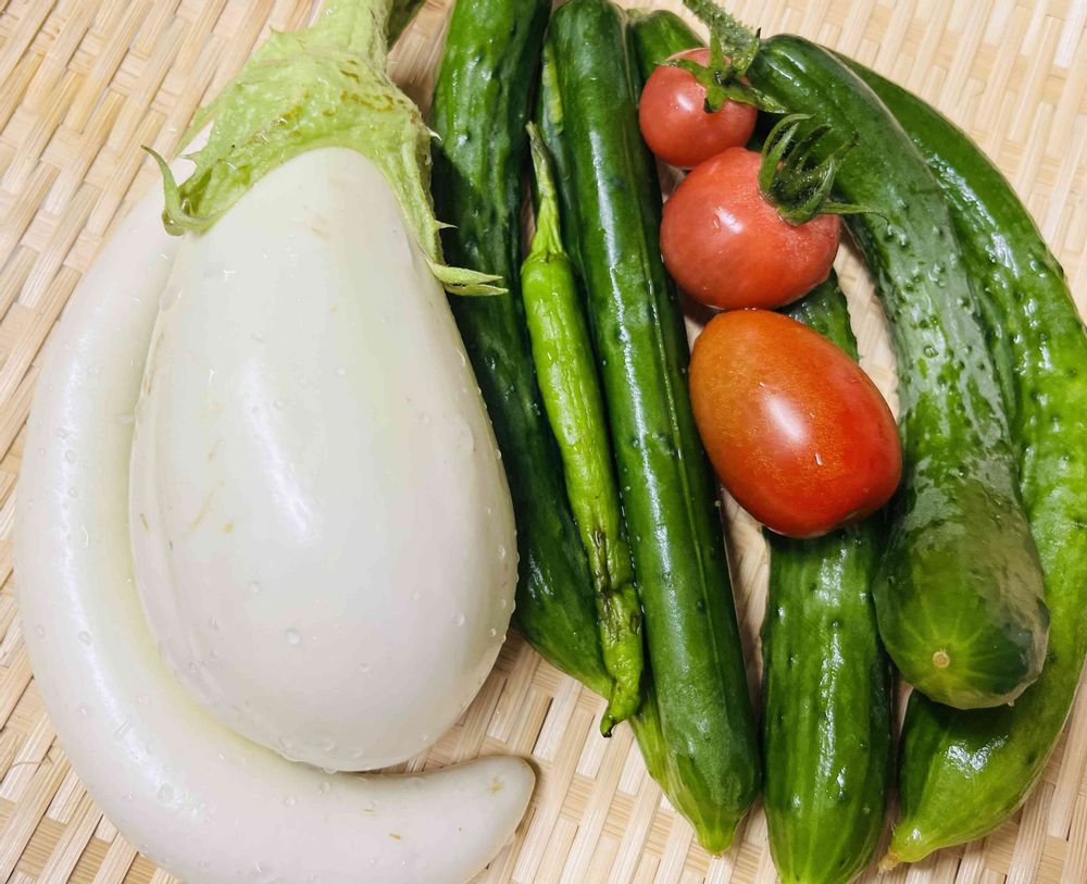 白茄子は今が最盛期ですが、胡瓜はそろそろ終わりそうです。