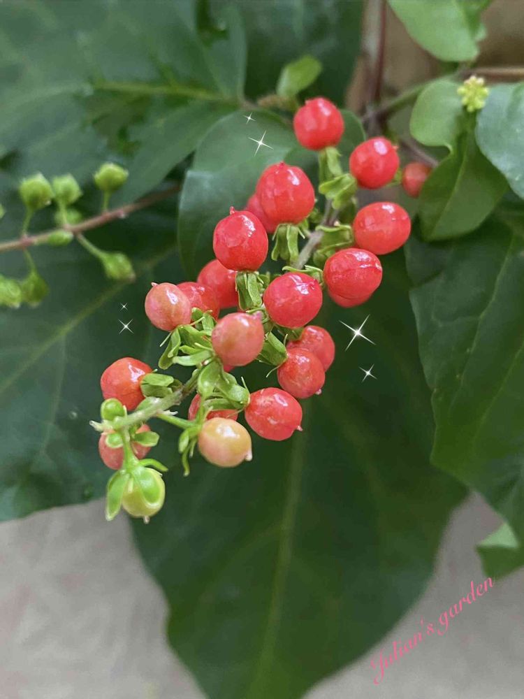 ①冬越ししたジュズローズの2番花の実もピンクからローズではなくて赤くなってきました🔴