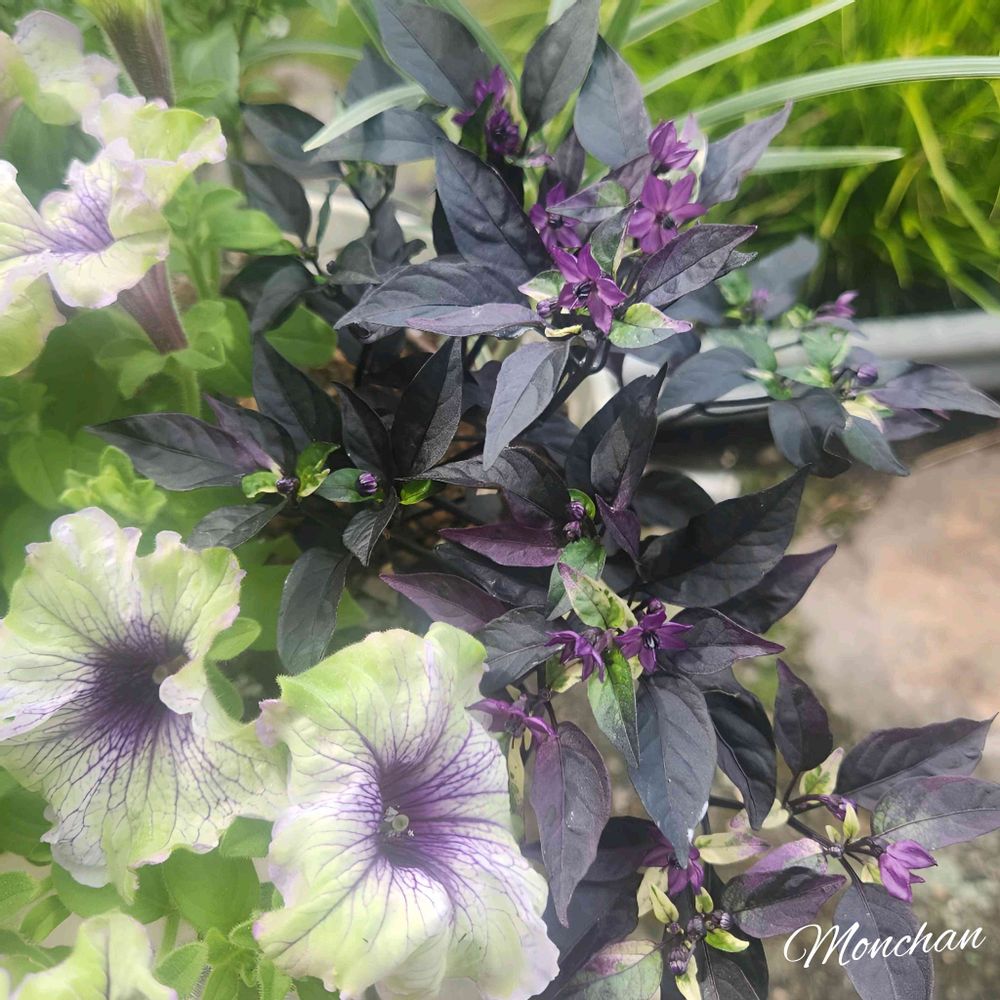 星形の小さな紫のお花と黒紫の葉がキレイです✨