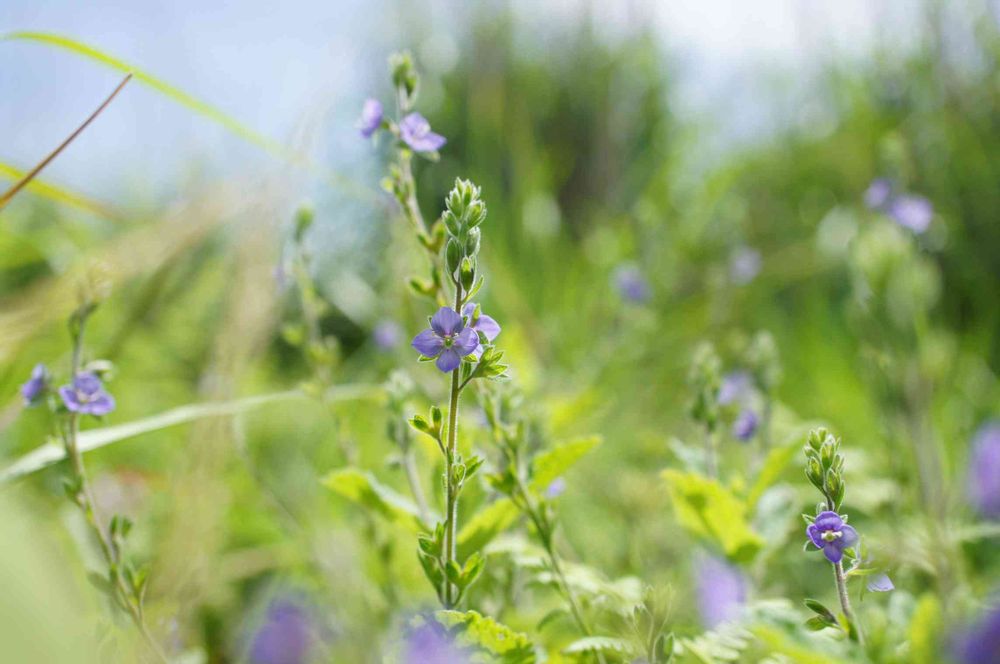 ススキ野原の道端でヒヨクソウが咲いていました。淡い青紫色がさわやかです☺️