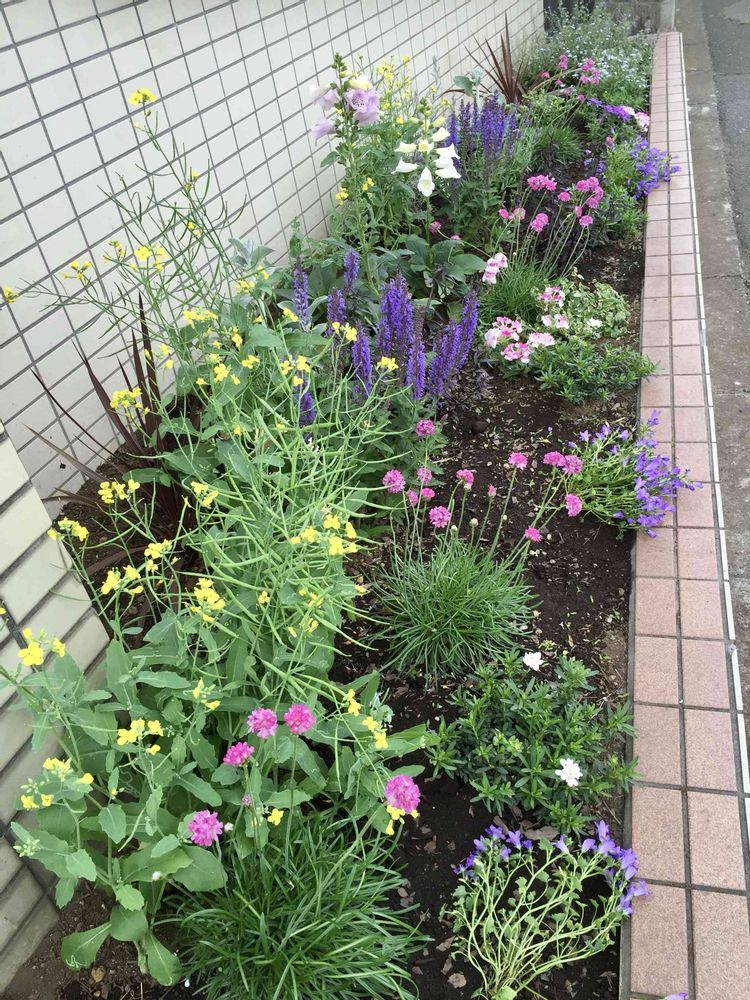 ① 反対側から見た春花壇 右下にコルジリネ