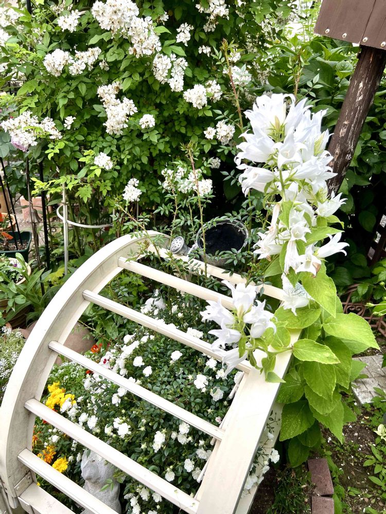 小さな庭ですが白い花でまとめたホワイトガーデンコーナーがあります🪴