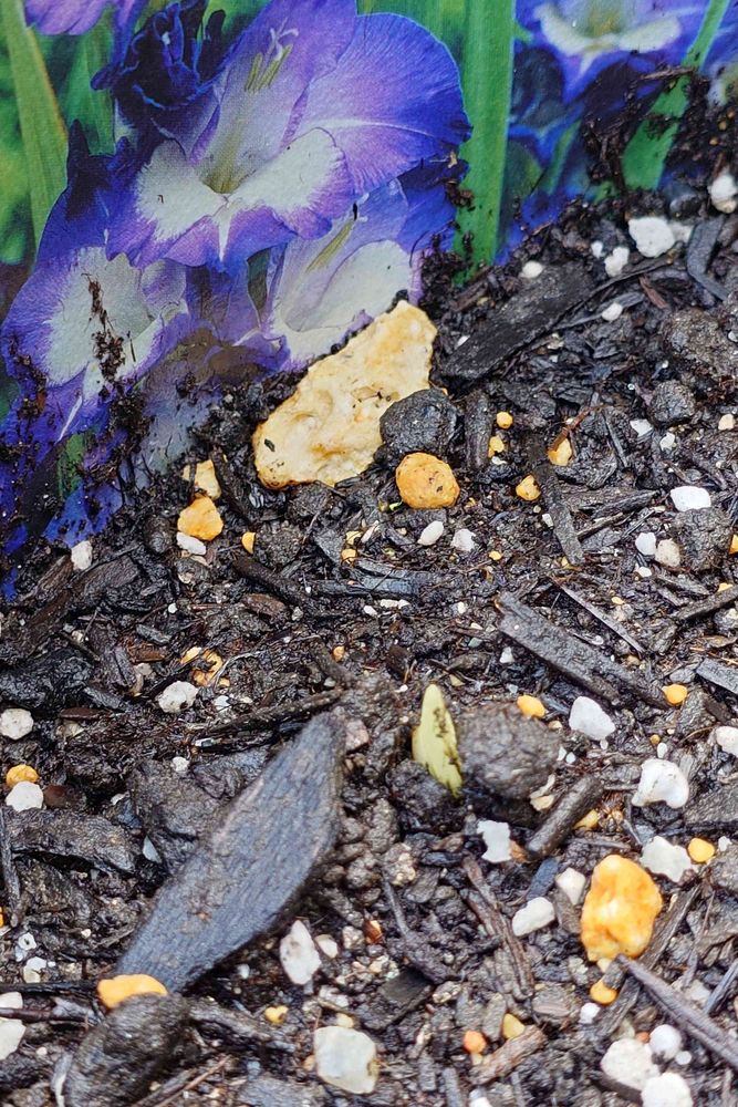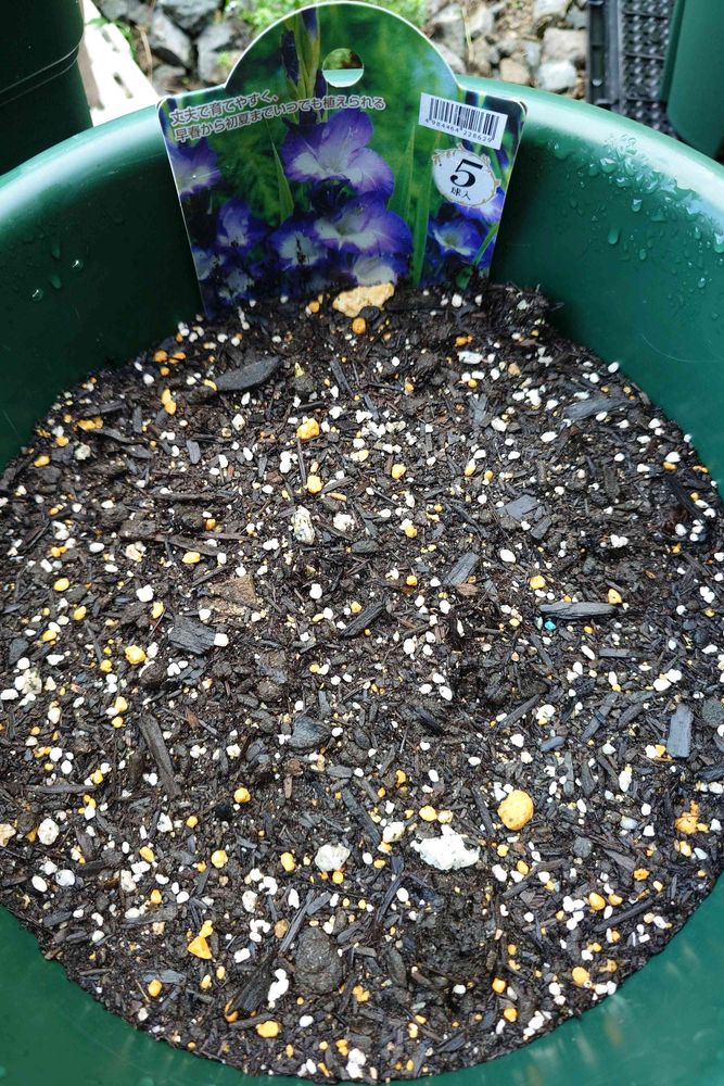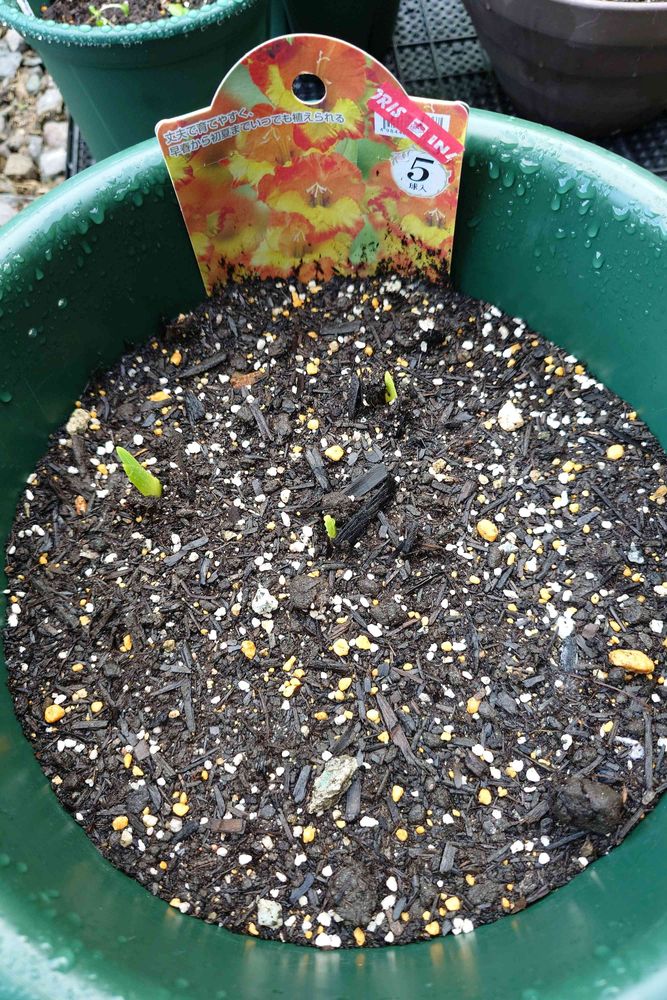 グラジオラスの芽が、土の中からちょこんと覗いて、可愛いですね〜🌱💜😍