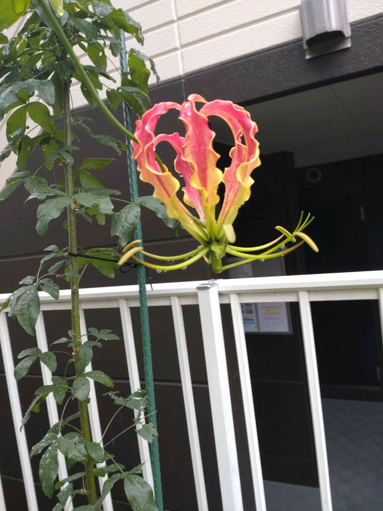 グラリオサ、日向じゃなきゃ無理と思っていたけど、余った球根も捨てがたく、埋めておいた。3年経って花には驚いた(✽ ゚д゚ ✽)