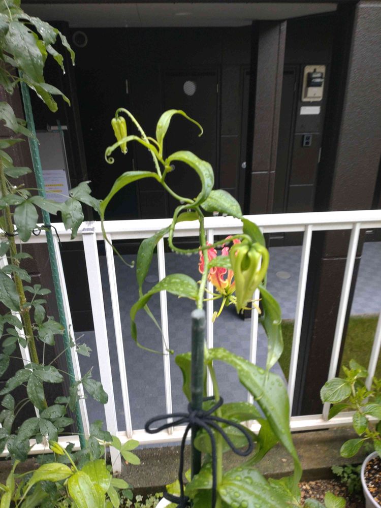 玄関の方のグロリオサは、毎年ガンガンに咲きます。残りを埋めておいたら、3年かかって、花をつけました。私も、ビックリです。