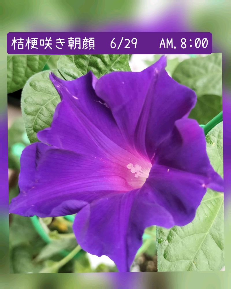 桔梗咲き朝顔の紫色が1輪咲きました。今朝の桔梗咲き朝顔は花びらに傷もなく綺麗です😄💜