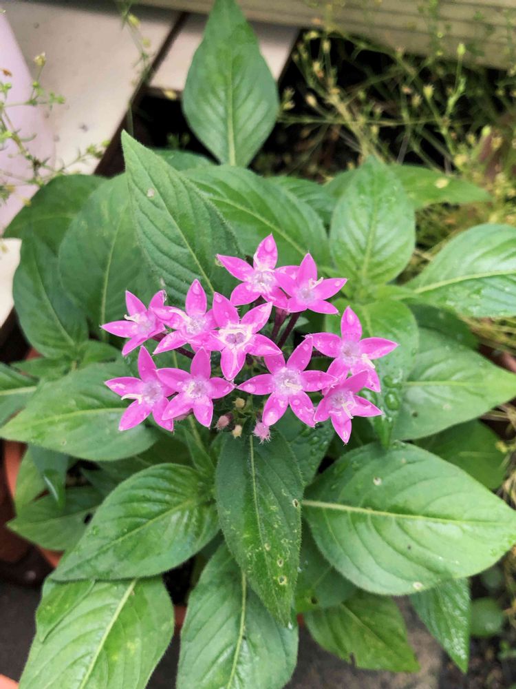 ④冬越しのペンタス🩷、葉っぱ🌿モリモリしてきたので期待してたら咲きました💕