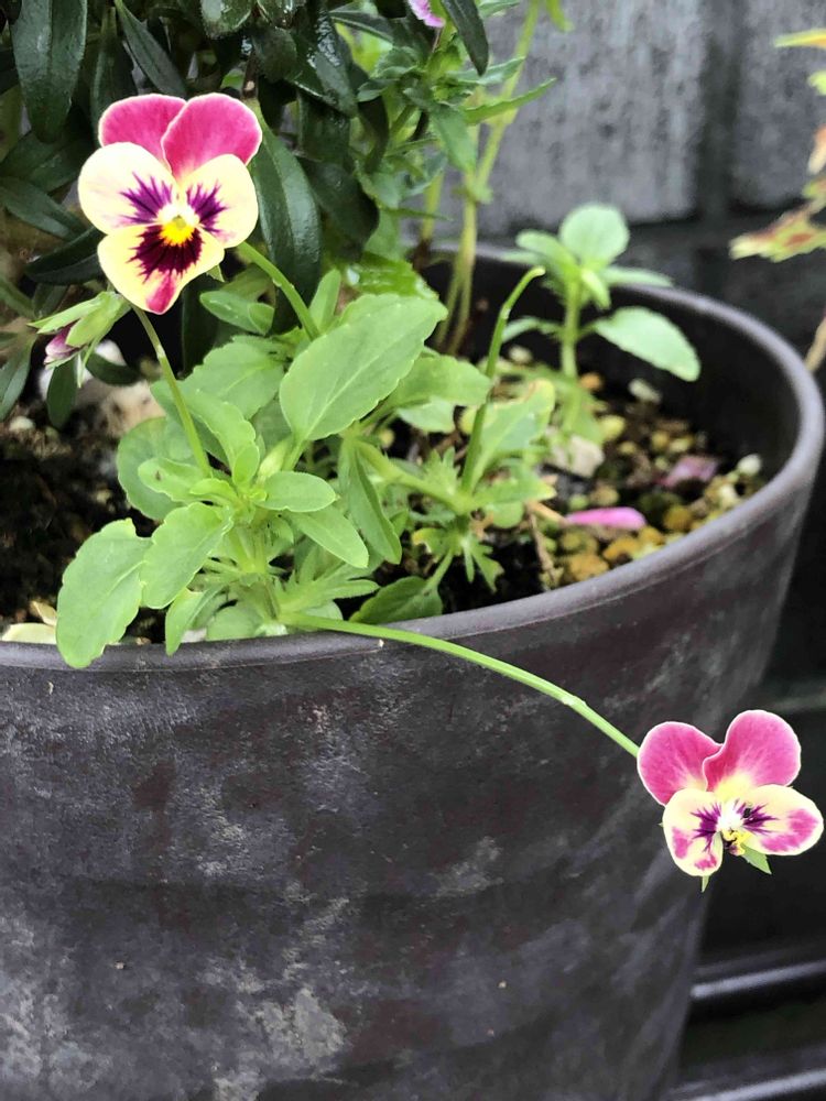 ⑤寄せ植えの中に置いてたビオラ🩷💛も最後まで頑張っています。