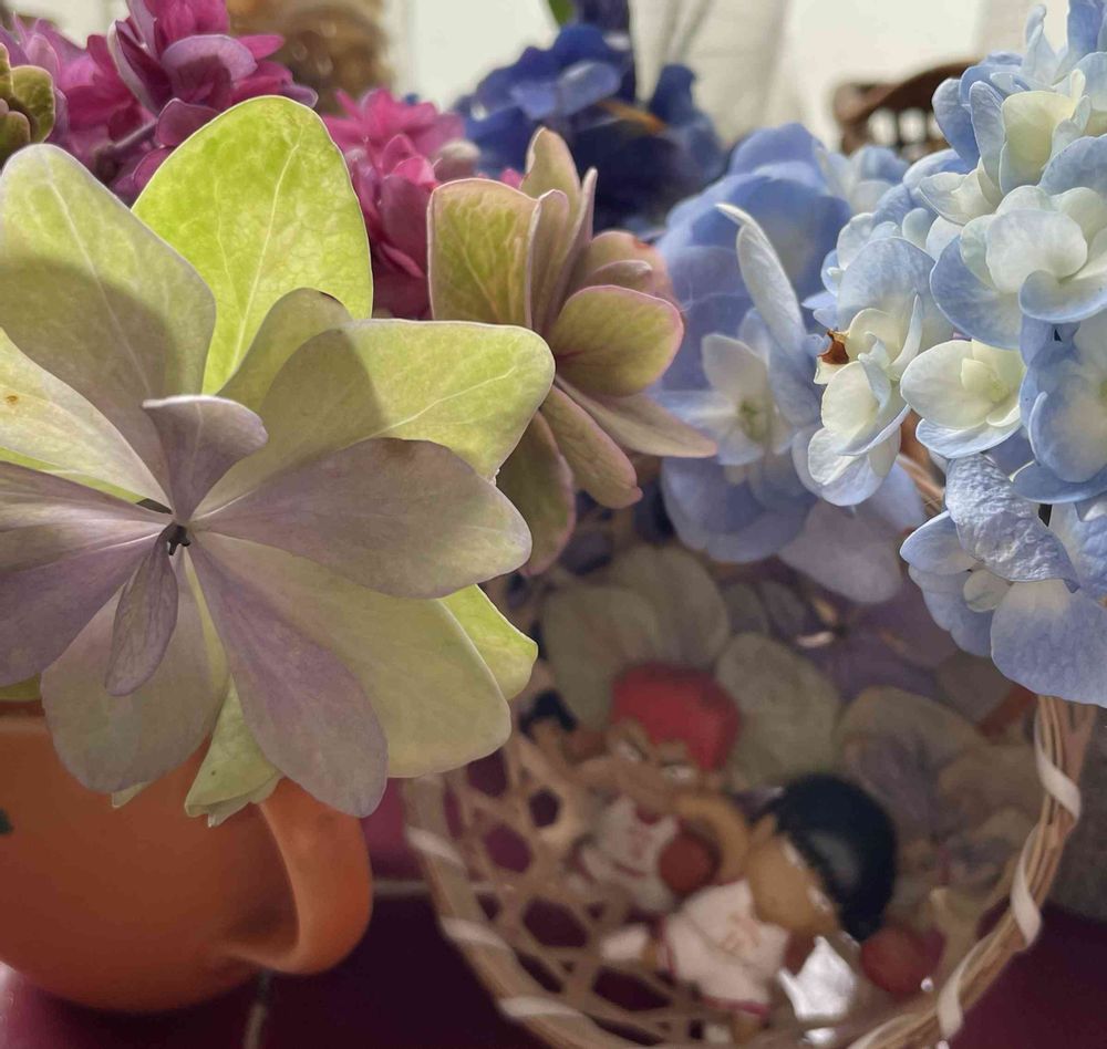 ドライにしたり額紫陽花も、部屋でも一緒で嬉しいですね😃💚