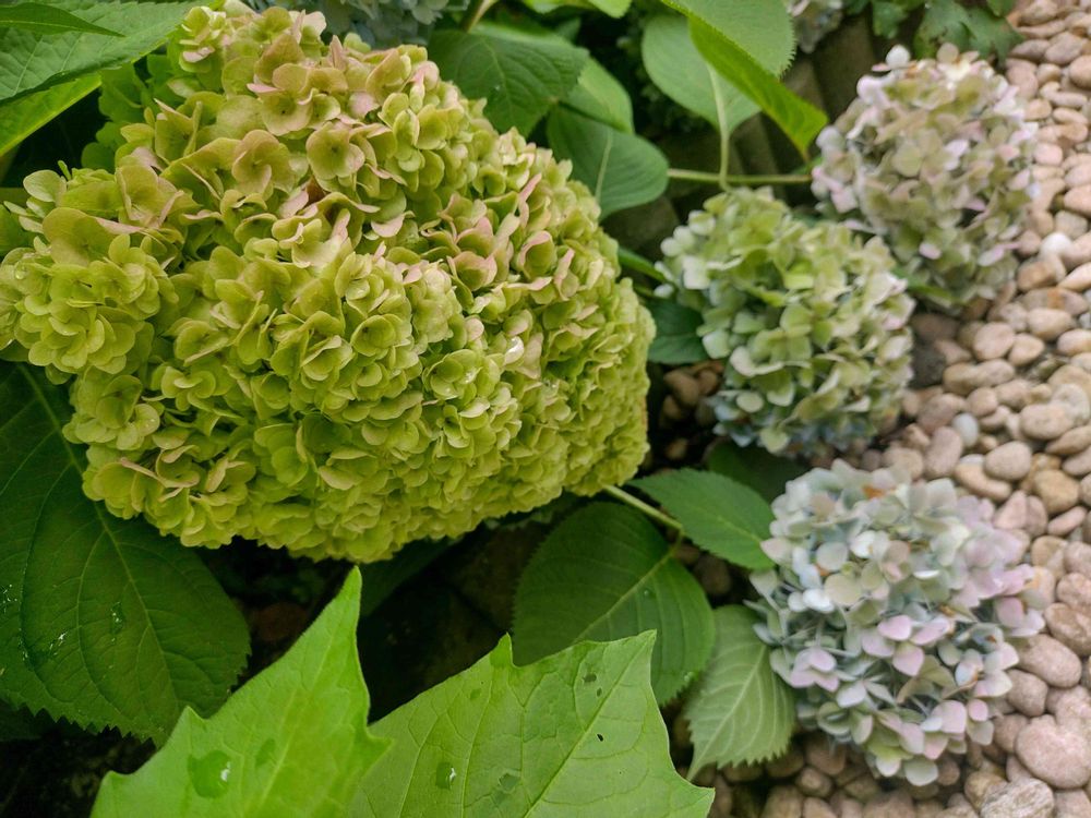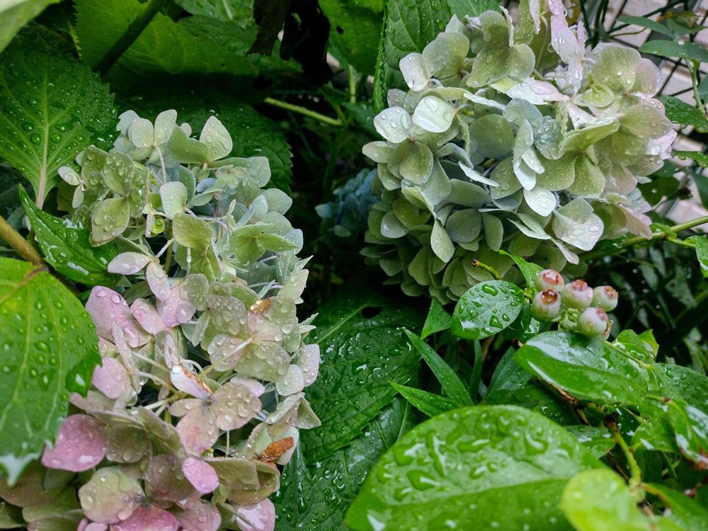 庭の紫陽花、もう花も終わり掛けたと思ってじっくり見たら、いい感じで色が抜けて秋色紫陽花になっていました。去年は茶色でいかにも枯れた感じになってしまったので、秋色になったのは今年が始めてで嬉しい❤。2枚目は柏葉紫陽花をメインに、3枚目は同じ木に咲き出した新しい花を対比のために載せました。