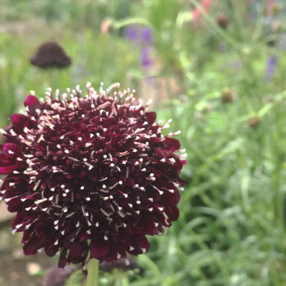 スカビオサ可愛いですよね〜♪渋い色がたまらんです♪ウチも今日咲いたんですけど、白いツンツンしてるとこがピンクでした♡