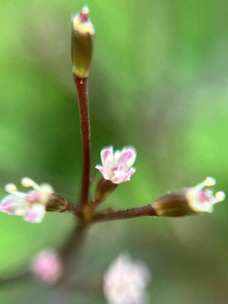 日本の山野草 葉に香り(葉を触っただけでは香らなかった)ミツバの花と違ってピンク