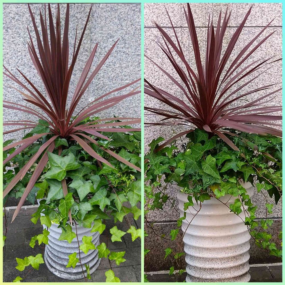 同じ場所の同じコルジリネですが、右側は観賞用トウガラシとの寄せ植えになってた時期もありました✋