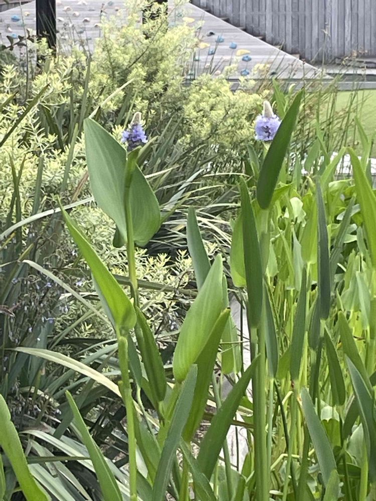 AI が、ポンテデリア・コルダタ(学名:Pontederia cordata )は、北米原産で、ミズアオイ科ポンテデリア属の耐寒性水生多年草。 和名では、ナガバミズアオイ(長葉水葵)と呼ばれます。 因みに、日本のミズアオイ(水葵)は1年草です。
