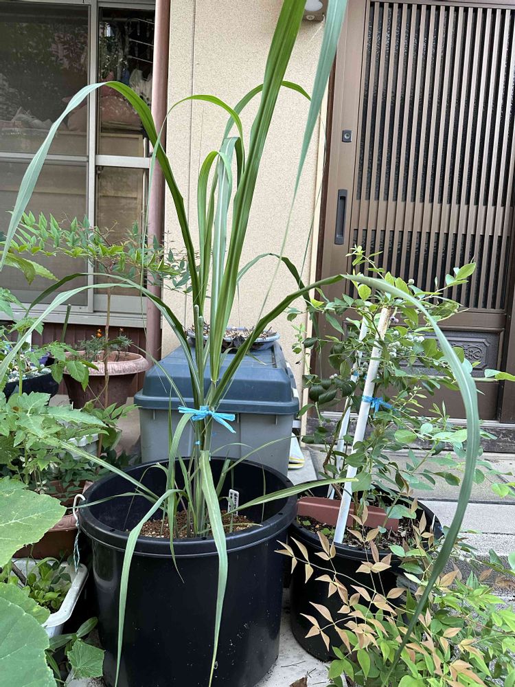 サトウキビが派手に伸びて来ました。まだまだ伸びる伸びる。河原に生えているヨシや、カヤにも似てるな。でも、農業屋で苗購入して来たので、間違いないかと思う