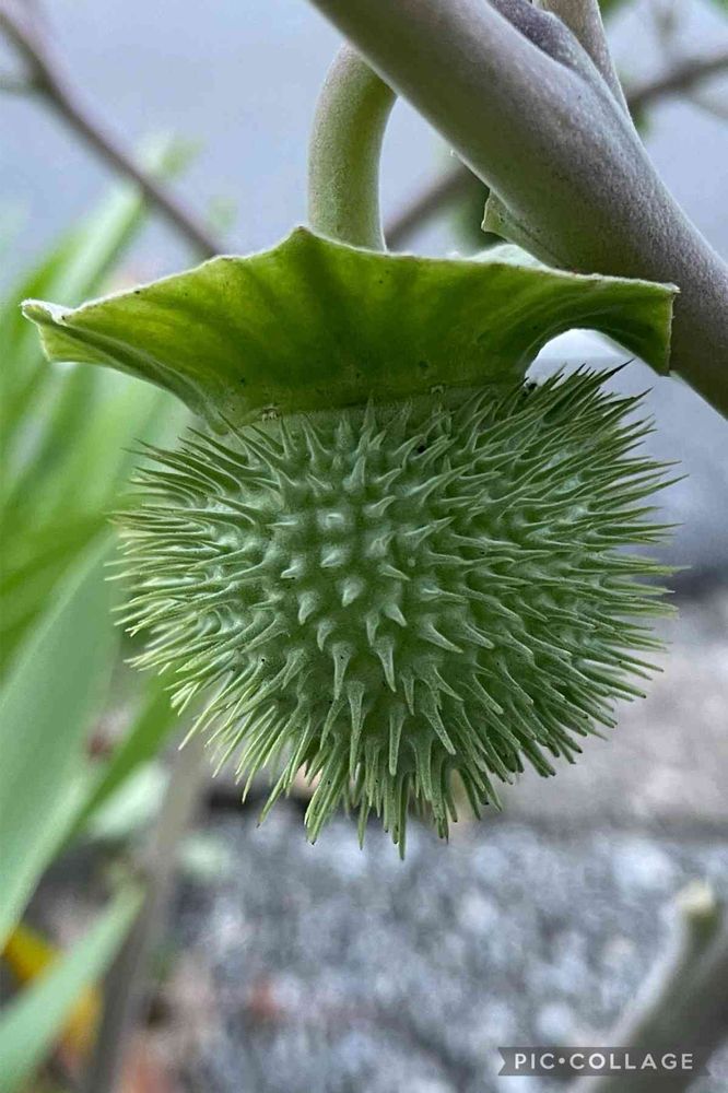 お花は似てるんですよね。でも、エンゼルトランペットは、こんな実は出来ないですよね😅