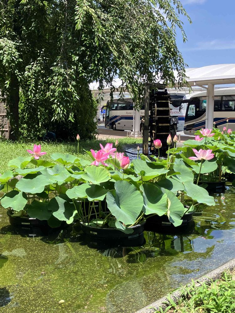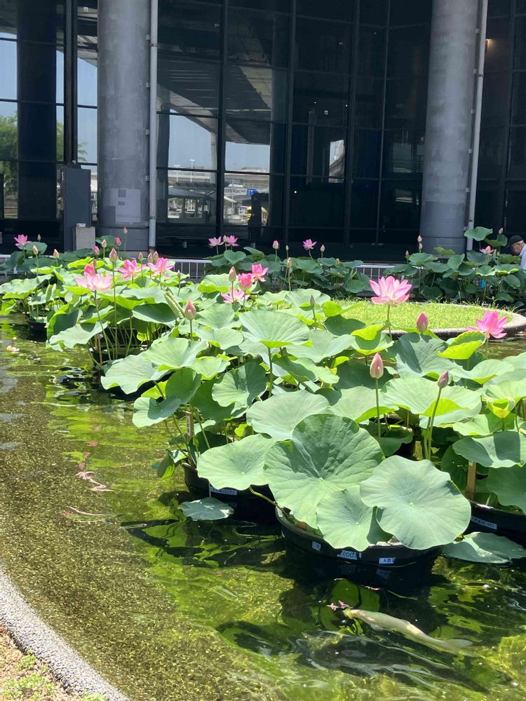 ハスが鉢に入って池の中に配置してあったので、この季節だけ置いているのかもしれませんね
