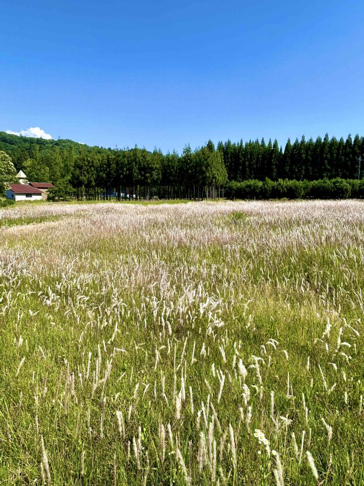 @☆しゃま☆さん。お早うございます👋😃☕良い所ですね👍😃チガヤと言うんですか?😲フワフワした植物は色々と在りますが結構好みです。有り難うございます🙏😊💐