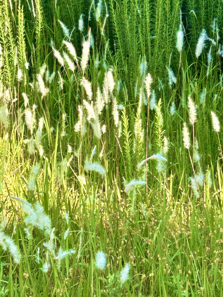 太陽の光で、銀色に揺らいだり、いろんな景色に変化するんですね〜😸チガヤお初です🐱😆