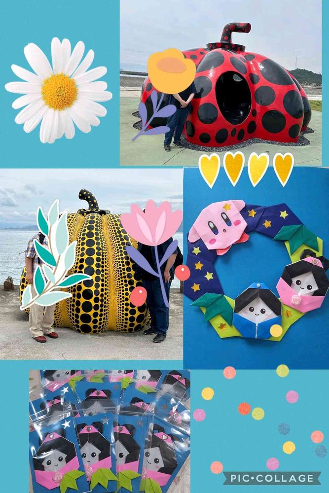 うわぁ~〜草間彌生さんの作品素敵ですねぇーーけいこさんの折り紙作品もいつも素敵ーー😋