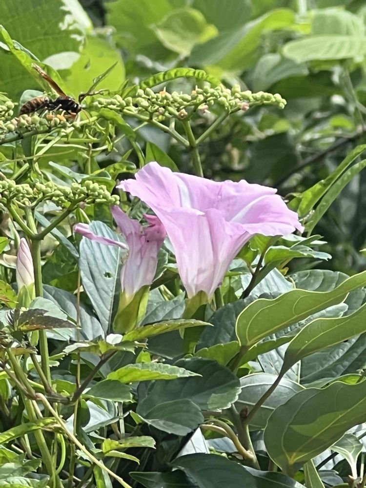 ③藪の中に咲くヒルガオ🌸ヤブガラシも幅をきかせていました😅