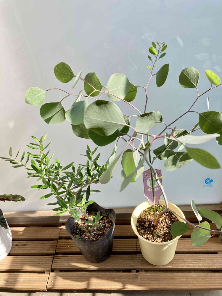 先日のオリーブ、今日のユーカリ、どっちも私もこれくらいの小さな苗でお迎えして、数年…今やお庭で巨木に育ってますよ👍ユーカリは、今年初めてお花が咲きそうです☺️