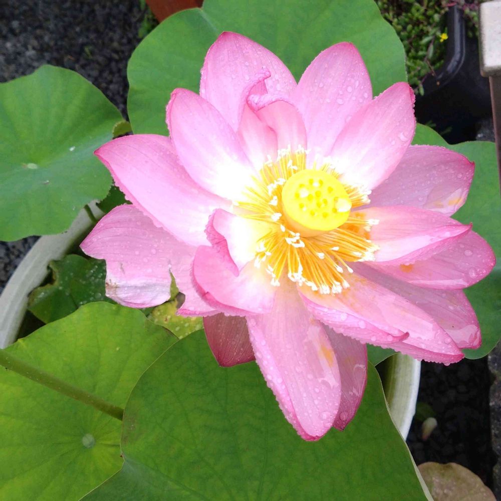 大雨の中、蓮が咲きました。