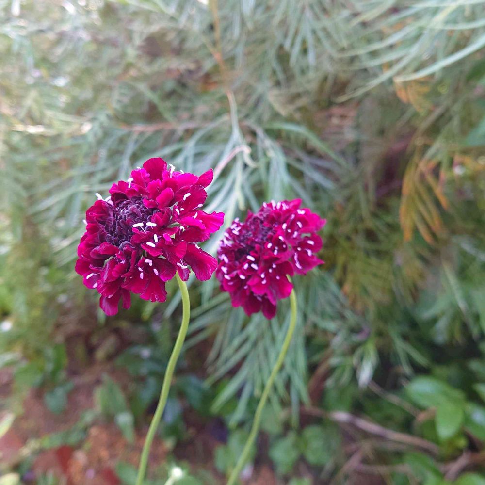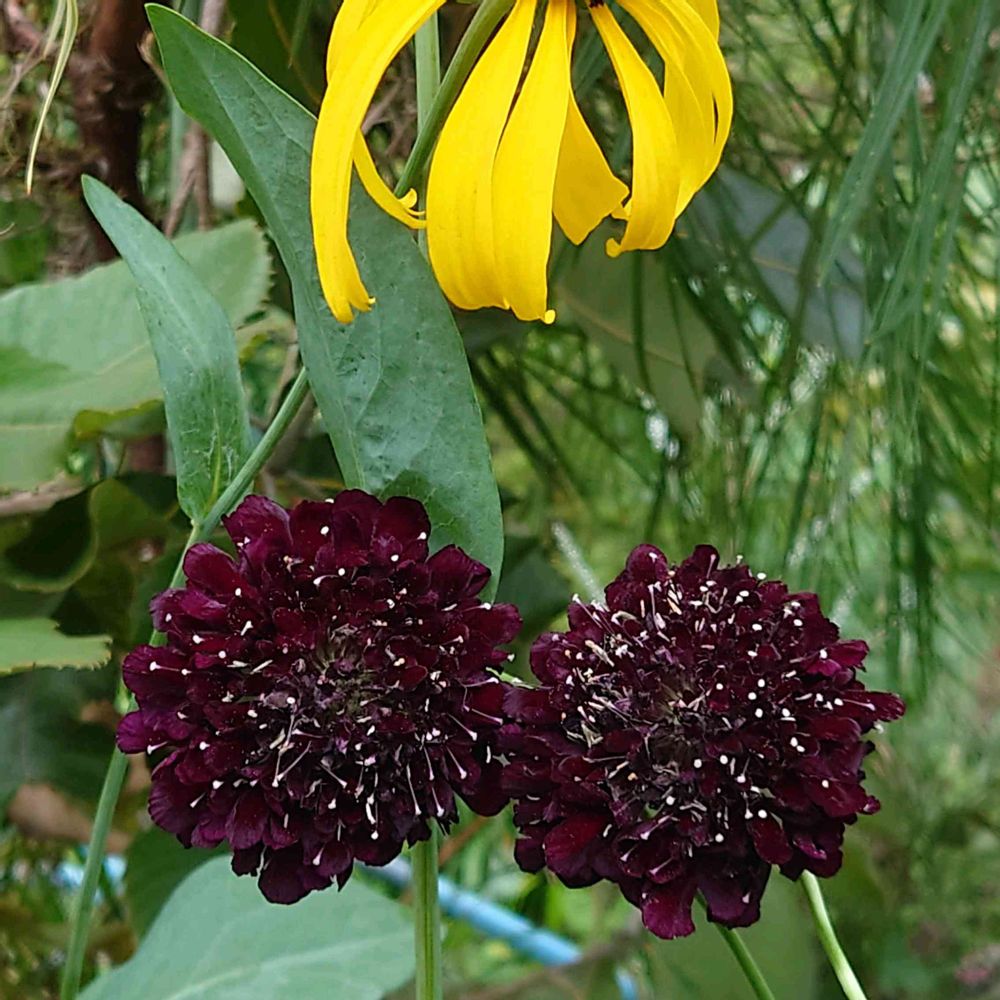 スカビオサ〜後、紫とピンクが我が家にあるんだけど、、、このシックなコは実はオマケで花終わりの頂き物なんです〜それが、地植えしたら、蕾が付いて開花してくれて、まだまだ蕾があるので嬉しいデス〜🥰🤎💕🖤