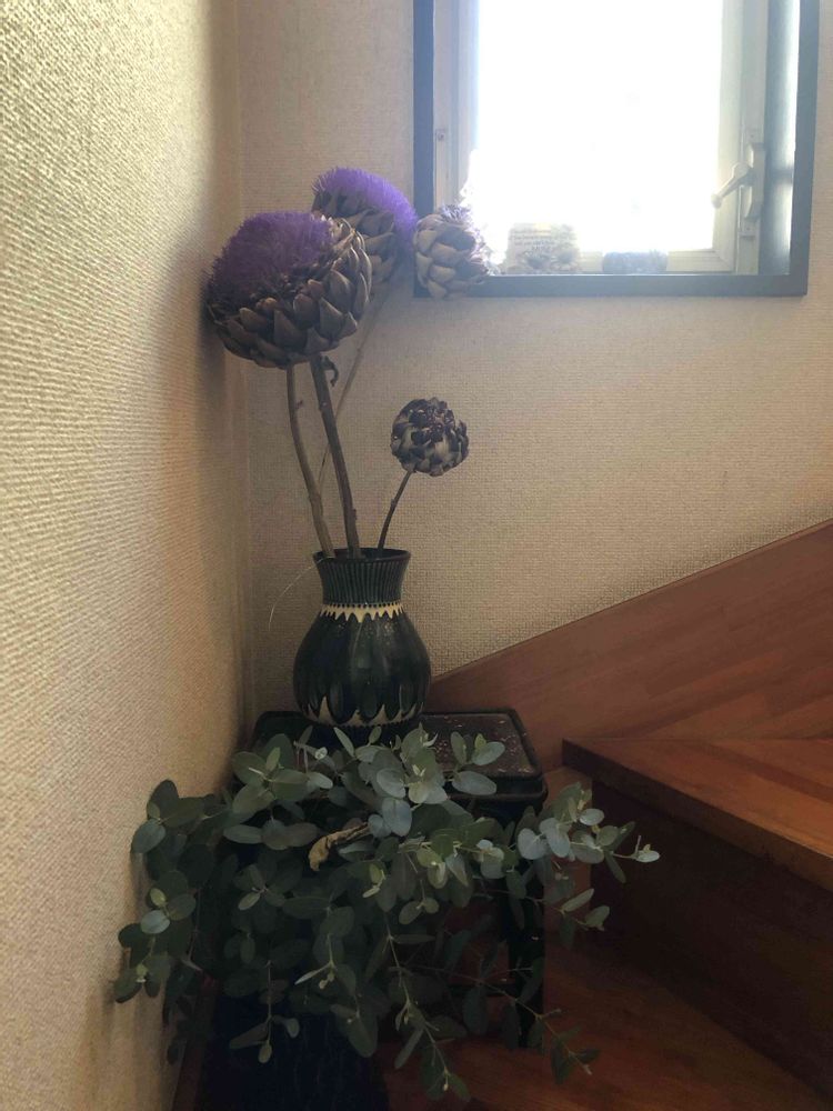 昨日古花市で買ったカード立て、アーティチョーク、花瓶