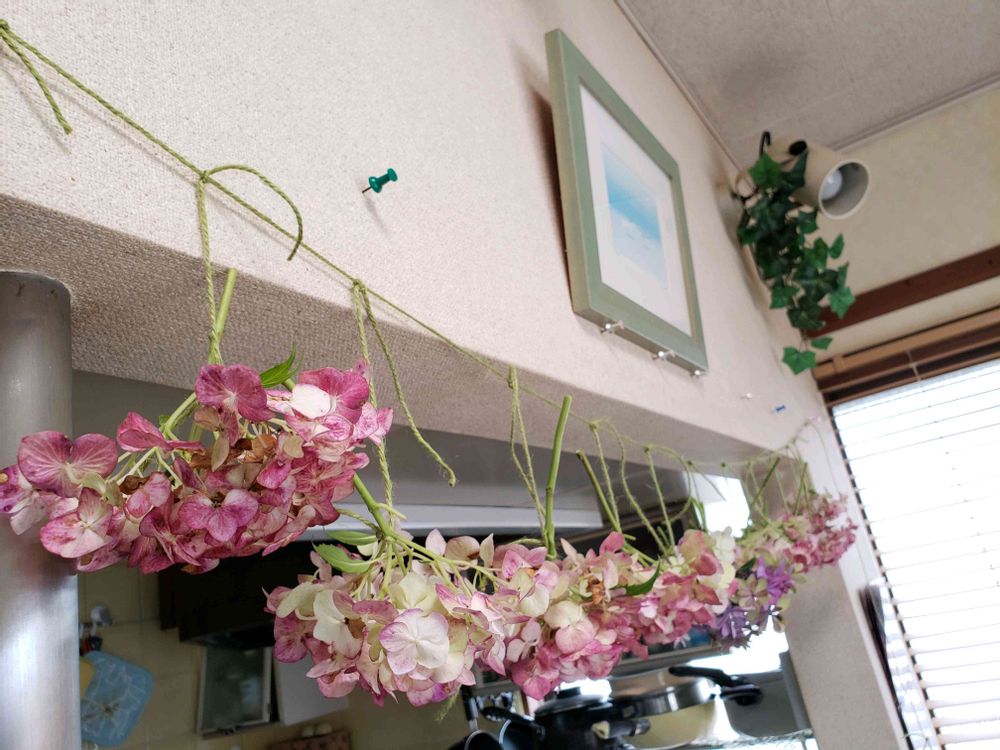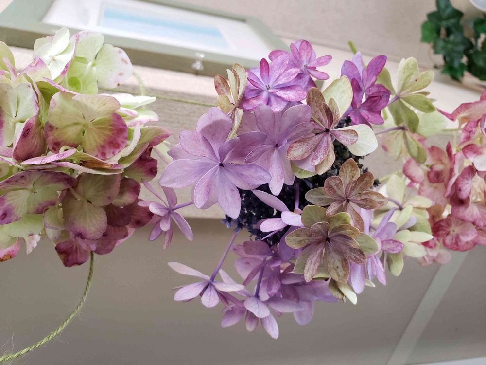 こうしてぶら下げて飾るのも大好きな紫陽花眺められて🩷天使のほっぺなんて名前もカワユス〜😊👌