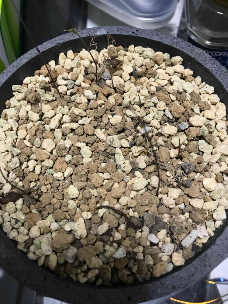 予想より目覚めが早い。去年の9月に蒔いたのでそれまでは放置を。と、考えてましたがお目覚めです(p_-)根が張る前に植え替えせねば。