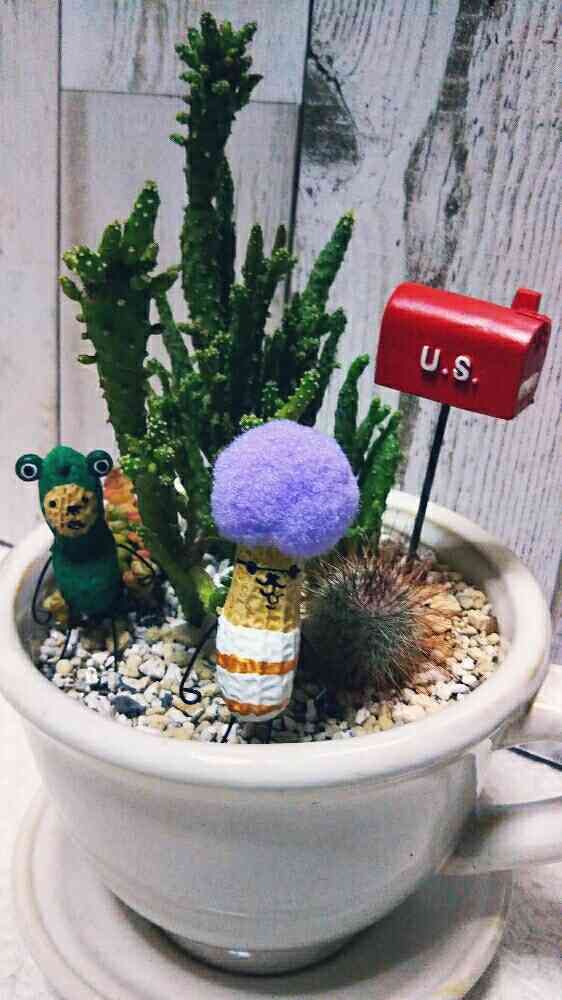 この寄せ植えね、ずいぶん前に作ったんだけど・・・アフロが立ってる場所が空いてる理由は、サボテンが1つ腐ってしまったから~(  ̄▽ ̄)笑💦