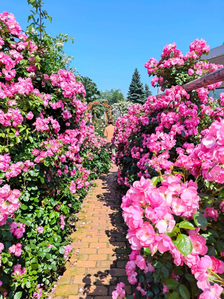 あいの里のローズガーデンは旧工場の周囲をすべて花畑が埋め尽くしていて一周ぐるっと回るのに30分ほど