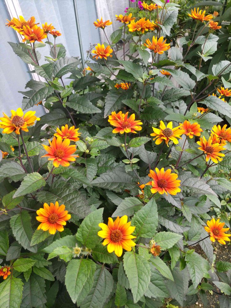 姫ヒマワリブリーディングハーツにぎやかに咲いてます🟠🟡🤗