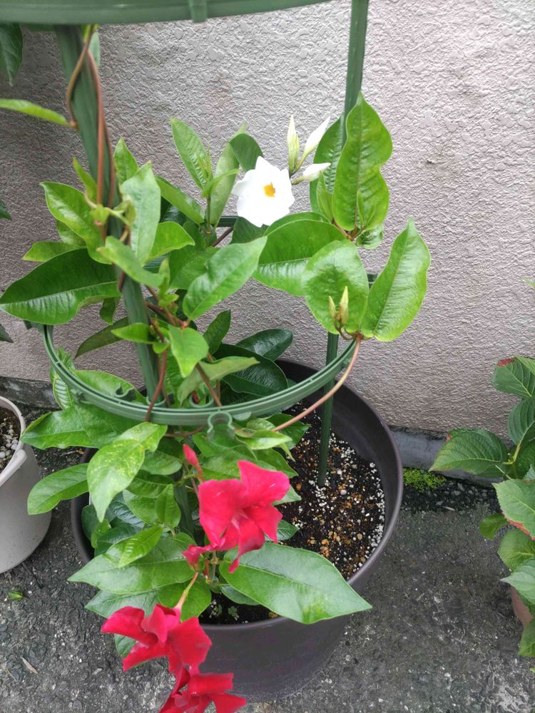 母の日に息子に買ってもらったクライミングサンパラソルは紅白で❤️🤍咲き始めました😊