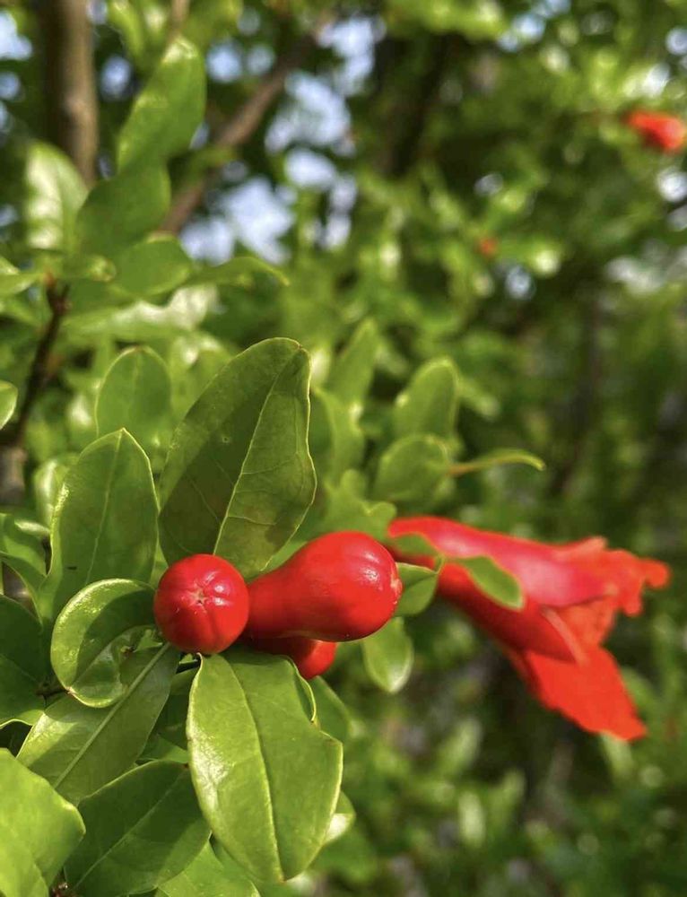 私も見て来たザクロの木,花が沢山咲いていて、実も少し出来てましたよ😁