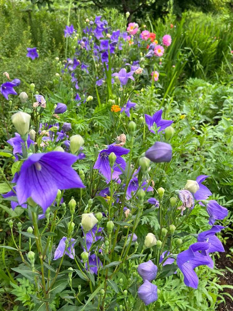 桔梗(ききょう)の花が咲き、蕾も可愛いです💜