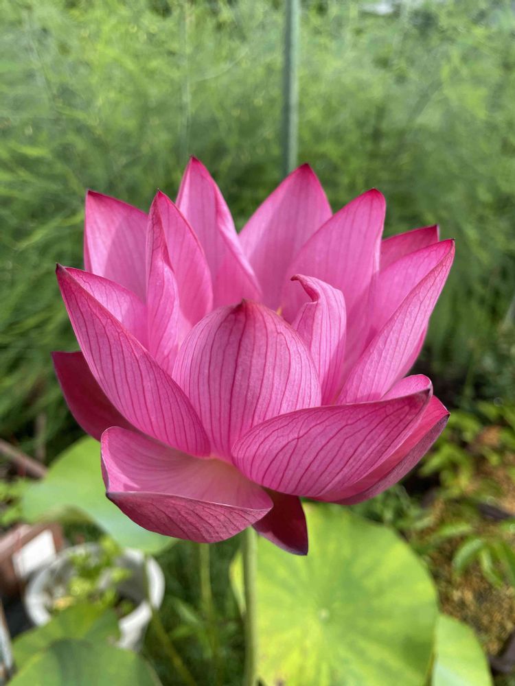 我が家のバケツハス。通常田んぼの土を使っていますが、株分け時に土が足りなくなり使い古しの土を使ったら変わらない綺麗なハスが咲きました😊土にこだわらなくても大丈夫って事が分かりました😆