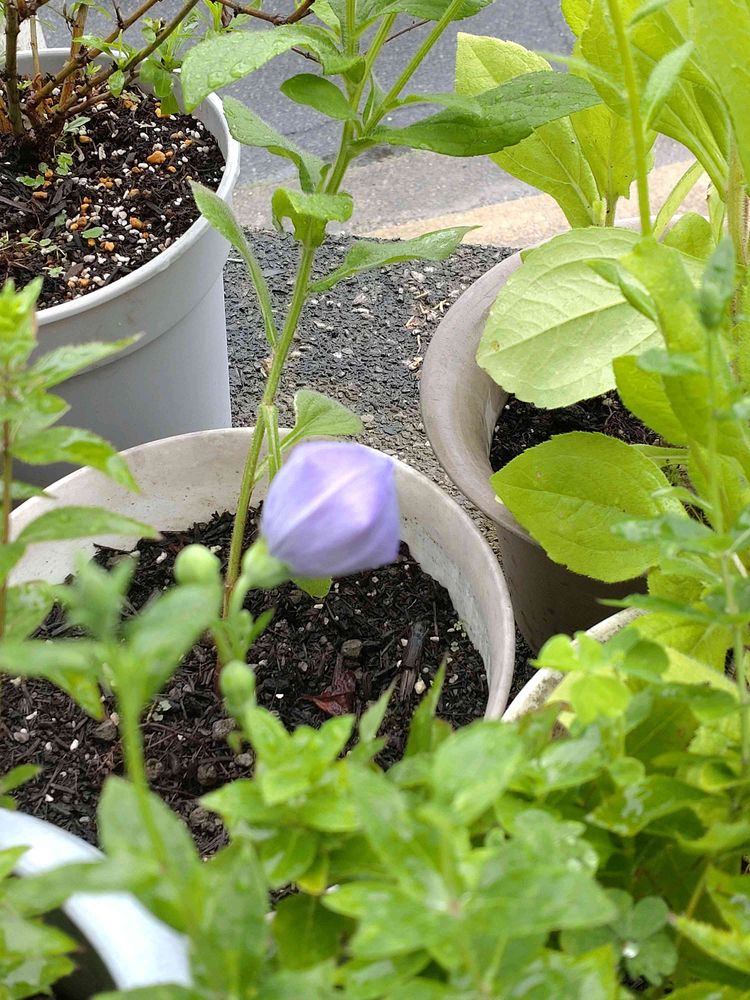 キキョウが、やっと咲きますね。💜💜💜有り難うね(⌒▽⌒)