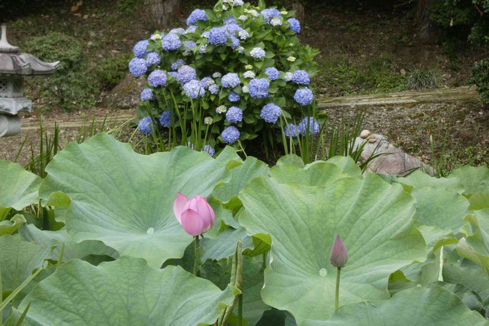近所のお寺境内では、古代蓮が咲き始めていました。