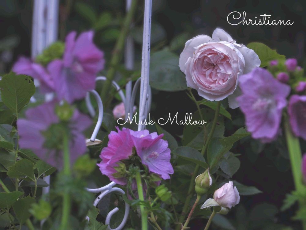 側に生えてきたムスクマロウとコラボ💕