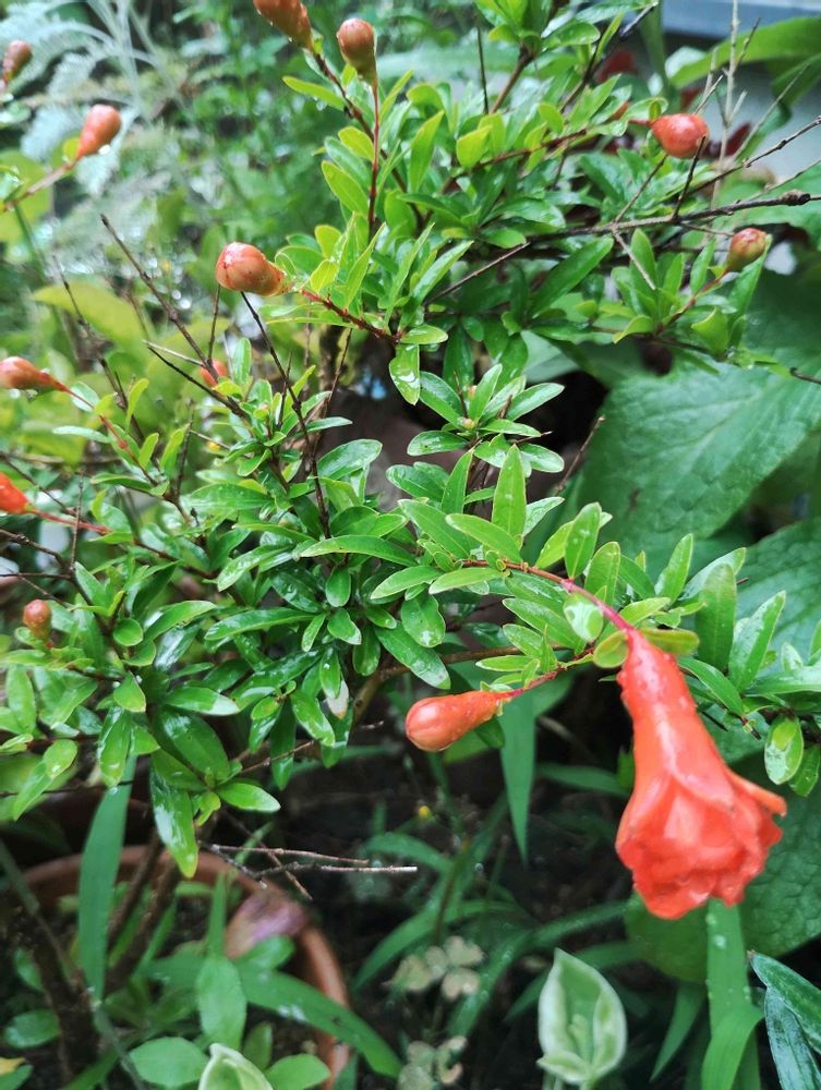 今日のお花ザクロ。ウチのは姫ザクロです。今年も沢山咲きそうです。