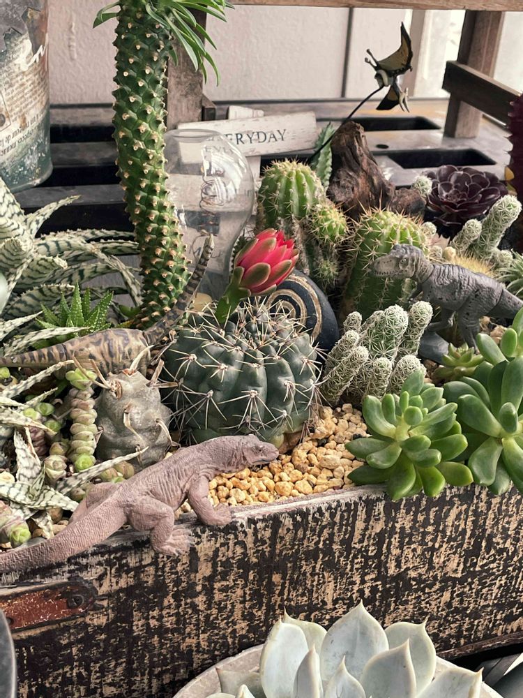 この寄せ植えに知らないサボテンが他にも入ってるから