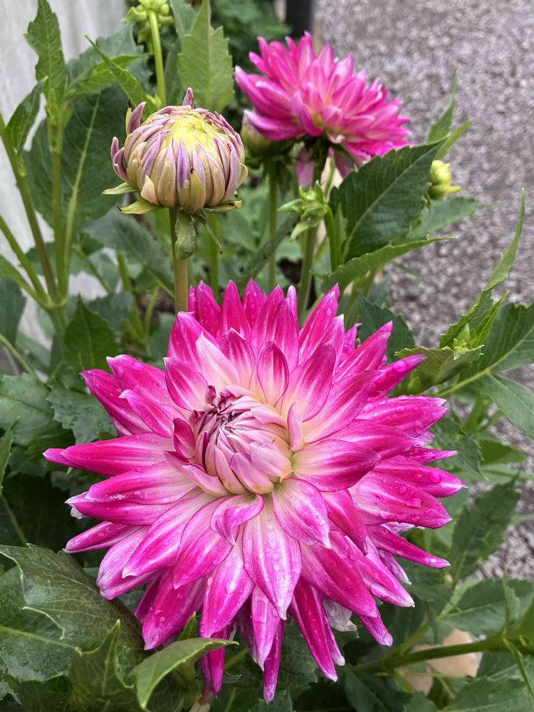 ①②地植えの大輪ダリア先日のオレンジ系に続いてピンク系も咲きました直径15cmくらいあります